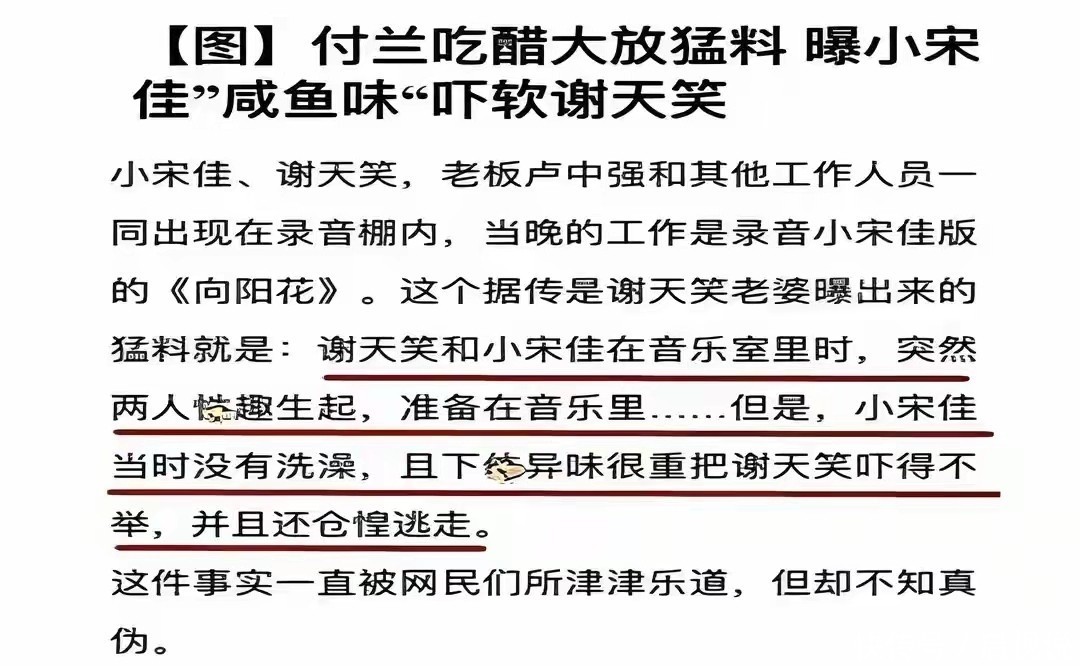 除此之外,她还曾和摇滚歌手谢天笑传过绯闻,被其妻子吐槽“有咸鱼味”。